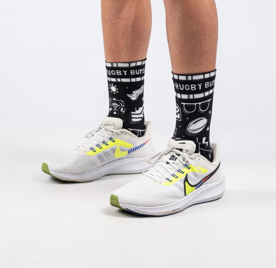 Our Black Crayon Socks are manufactured from high quality polylon36 fibre, featuring a breathable upper mesh. The True Print technology will never fade or wash out. Rugby Bums socks are ideal for intense training and everyday wear.